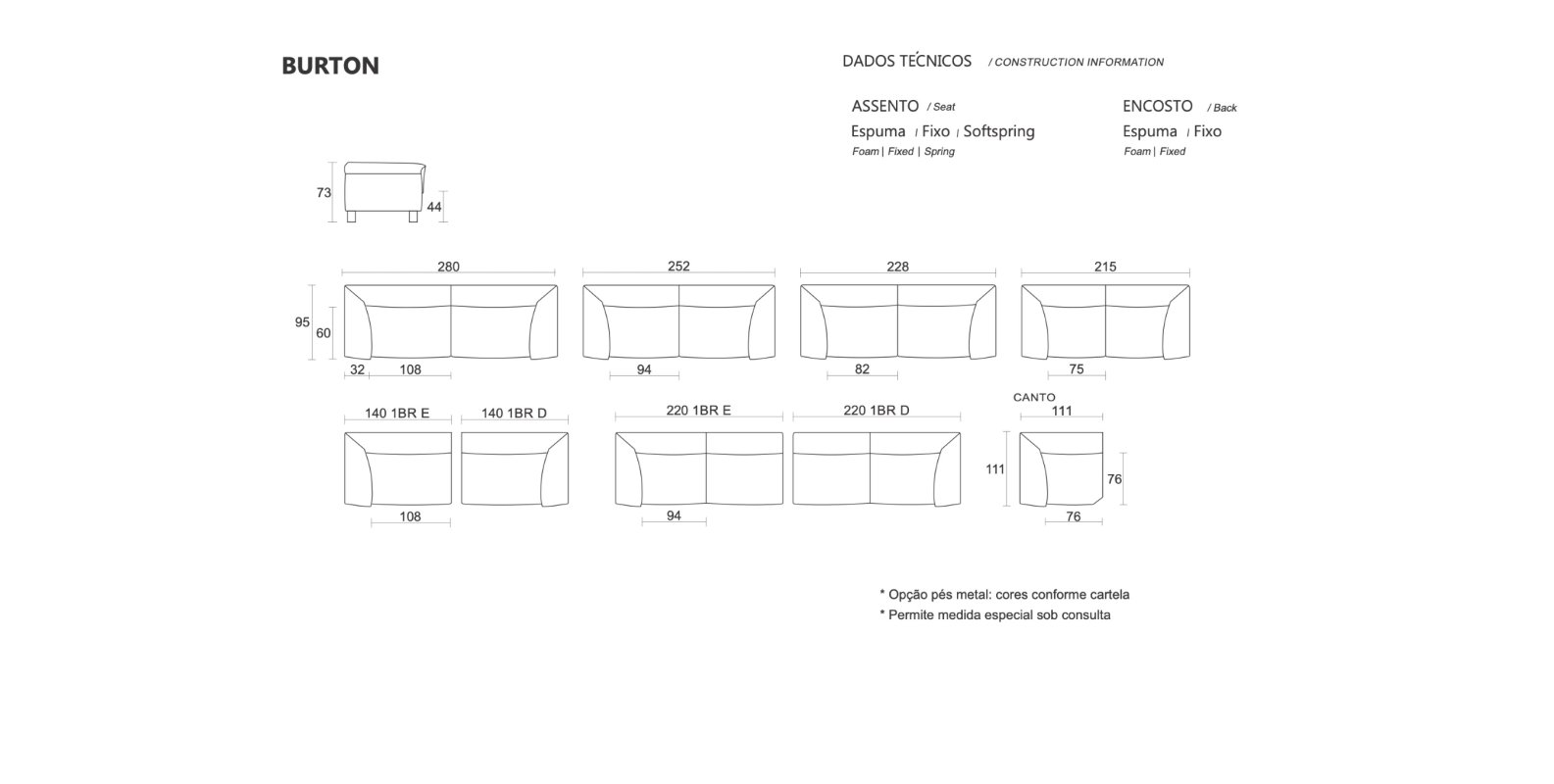 Almofadas do assento: Almofadas fixas, espuma D35 soft + D30 soft, Manta fibra siliconizada.